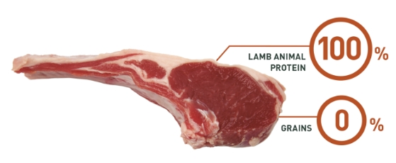 Suszona jagnięcina, tapioka, tłuszcz drobiowy (źródło kwasów tłuszczowych Ω-6), zielony groszek, drożdże i ekstrakt drożdżowy – Saccharomyces cerevisiae (źródło mannanooligosacharydów – MOS i β-glukanów), bataty, chleb świętojański, olej rybi (źródło kwasów tłuszczowych Ω-3-EPA i DHA), wysłodki buraczane, inulina (rozpuszczalny błonnik pokarmowy z korzenia cykorii, źródło frukto-oligosacharydów – FOS), naturalna celuloza (źródło nierozpuszczalnego błonnika), minerały, rozpuszczalny błonnik pokarmowy uzyskany z Plantago ovata, olejki eteryczne (oregano, cynamon, goździk, tymianek, rozmaryn, mięta pieprzowa, zielona herbata), hydrolizaty skorupiaków (źródło glukozaminy), hydrolizaty kolagenu (źródło chondroityny), juka, koncentrat liofilizowanego soku z melona (bogaty w dysmutazę ponadtlenkową – SOD).