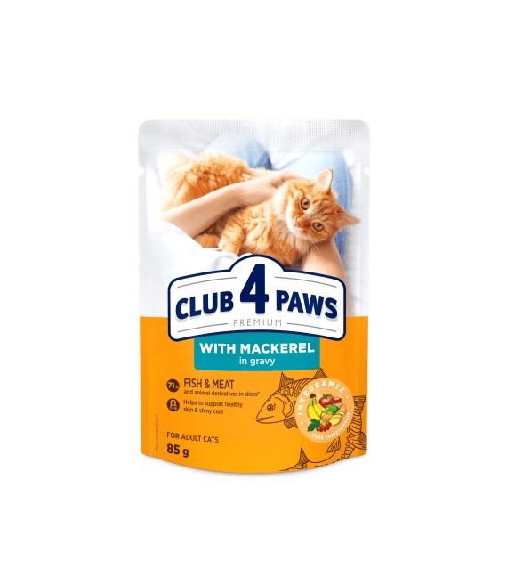CLUB 4 PAWS PREMIUM MOKRA KARMA DLA DOROSŁYCH KOTÓW – MAKRELA W SOSIE 85g