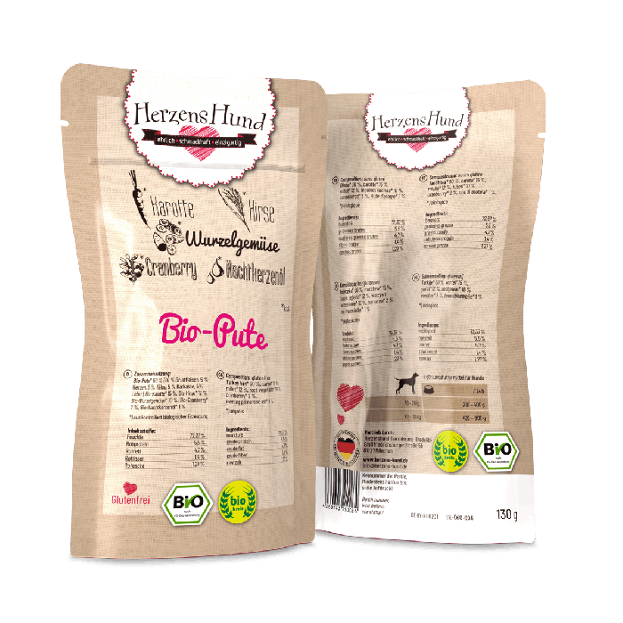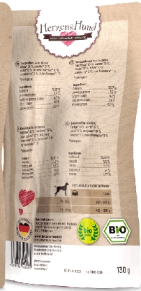 Wszystkie produkty HerzensHund są wyprodukowane i certyfikowane zgodnie z rozporządzeniem WE w sprawie produkcji ekologicznej i znakowania produktów ekologicznych. Menu podlegają regularnej kontroli Ekologicznej Jednostki Kontrolnej ABCERT (DE-ÖKO-006), co gwarantuje, że jakość składników i standardy produkcji spełniają wysokie wymagania stawiane produktom ekologicznym.