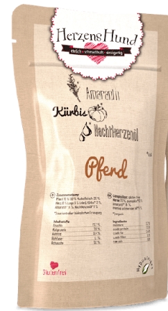 Karma Herzens Hund to ekologiczna mokra karma dla psów, produkowana przez firmę HerzensHund Tiernahrung GbR w Niemczech. Jest to karma 100% naturalna, hypoalergiczna, zawierająca koninę oraz inne składniki, które są smaczne i zdrowe dla psa.