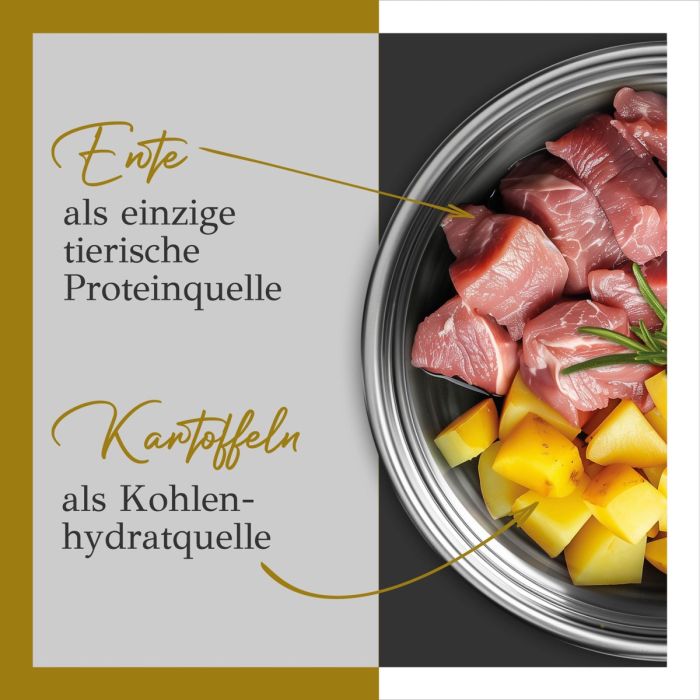 Kaczka wraz z ziemniakami PRIMUM jest gotowana powoli i delikatnie w niskiej temperaturze. Dzięki sprawdzonemu procesowi produkcji karma nie traci swoich wartości odżywczych, a pies otrzymuje je w naturalnej, niezmienionej postaci. Krokiety są miękkie i wyjątkowo intensywne. Karma dla psów PRIMUM Ente składa się z wyselekcjonowanej kaczki jako jedynego źródła białka zwierzęcego i całkowicie rezygnuje ze zbóż. Karma półwilgotna jest również idealna dla psów z nietolerancją pokarmową i alergiami.