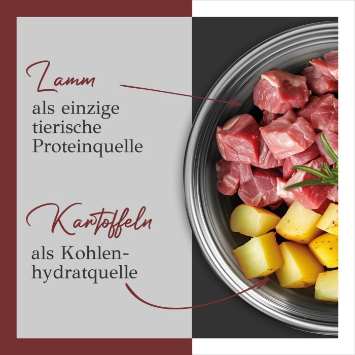 Jagnięcina wraz z ziemniakami PRIMUM jest gotowana powoli i delikatnie w niskiej temperaturze. Dzięki sprawdzonemu procesowi produkcji karma nie traci swoich wartości odżywczych, a pies otrzymuje je w naturalnej, niezmienionej postaci. Krokiety są miękkie i wyjątkowo intensywne. Karma dla psów PRIMUM Lamm składa się z wyselekcjonowanej jagnięciny jako jedynego źródła białka zwierzęcego i całkowicie rezygnuje ze zbóż. Karma półwilgotna jest również idealna dla psów z nietolerancją pokarmową i alergiami.