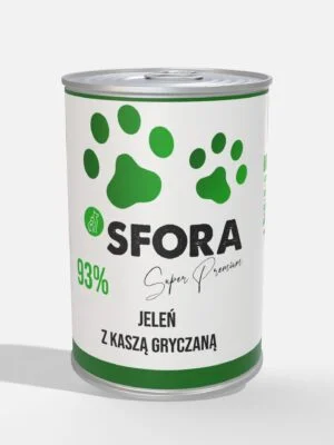 Karma Sfora Jeleń z kaszą gryczaną dla każdego konesera smaków.