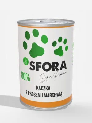 Karma Sfora Kaczka z prosem i marchwią 400g Puszki monobiałkowe!