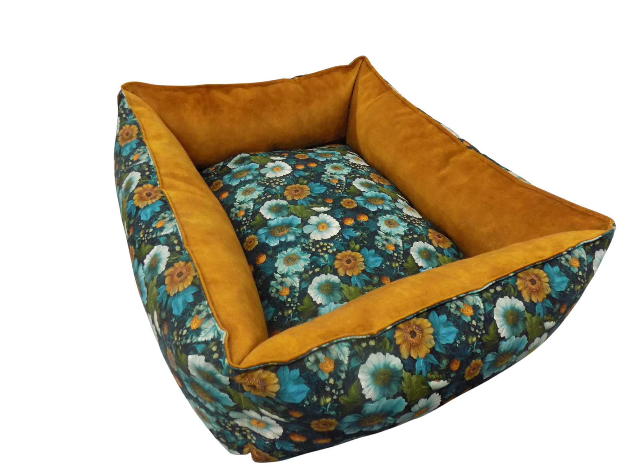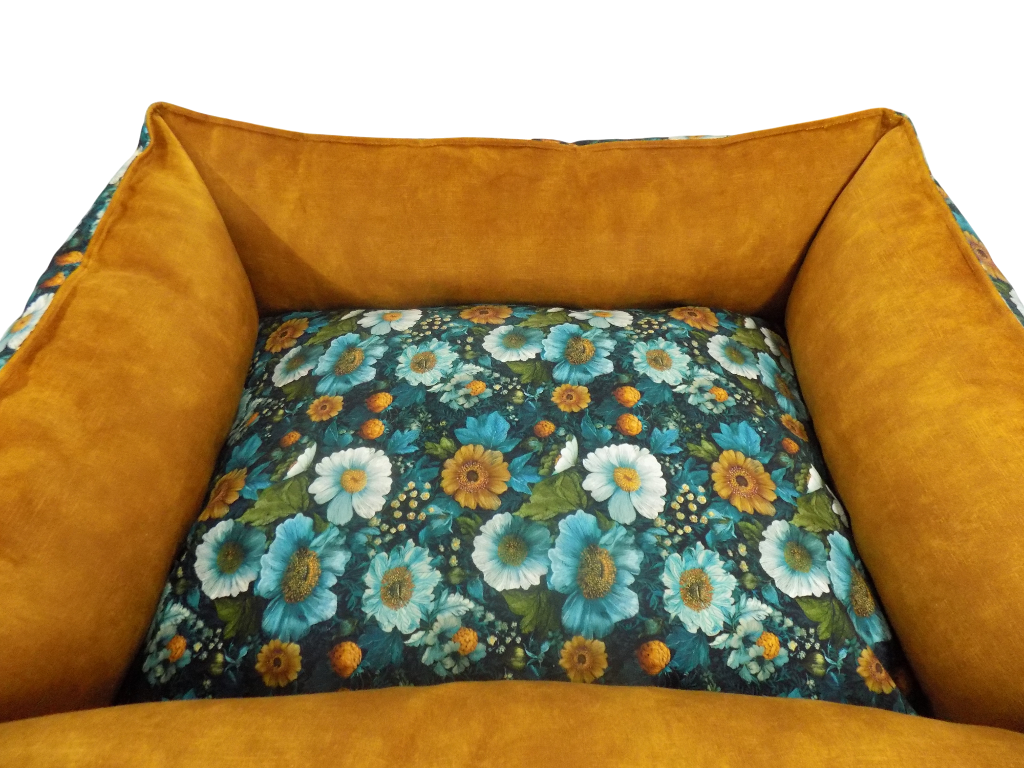 Wykonany z weluru tapicerskiego: środek poduszka dwu stronna