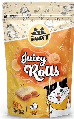 Mr. Bandit Juicy Rolls to wilgotne krokieciki ze smakowitym nadzieniem z żółtka. Miękkie i aromatyczne kąski to świetna motywacja do figlowania dla kocich łobuzów.