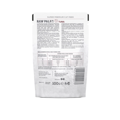 RAW PALEO ADULT/STERILISED CAT TUNA 100g – mokra karma dla kotów dorosłych i sterylizowanych – tuńczyk