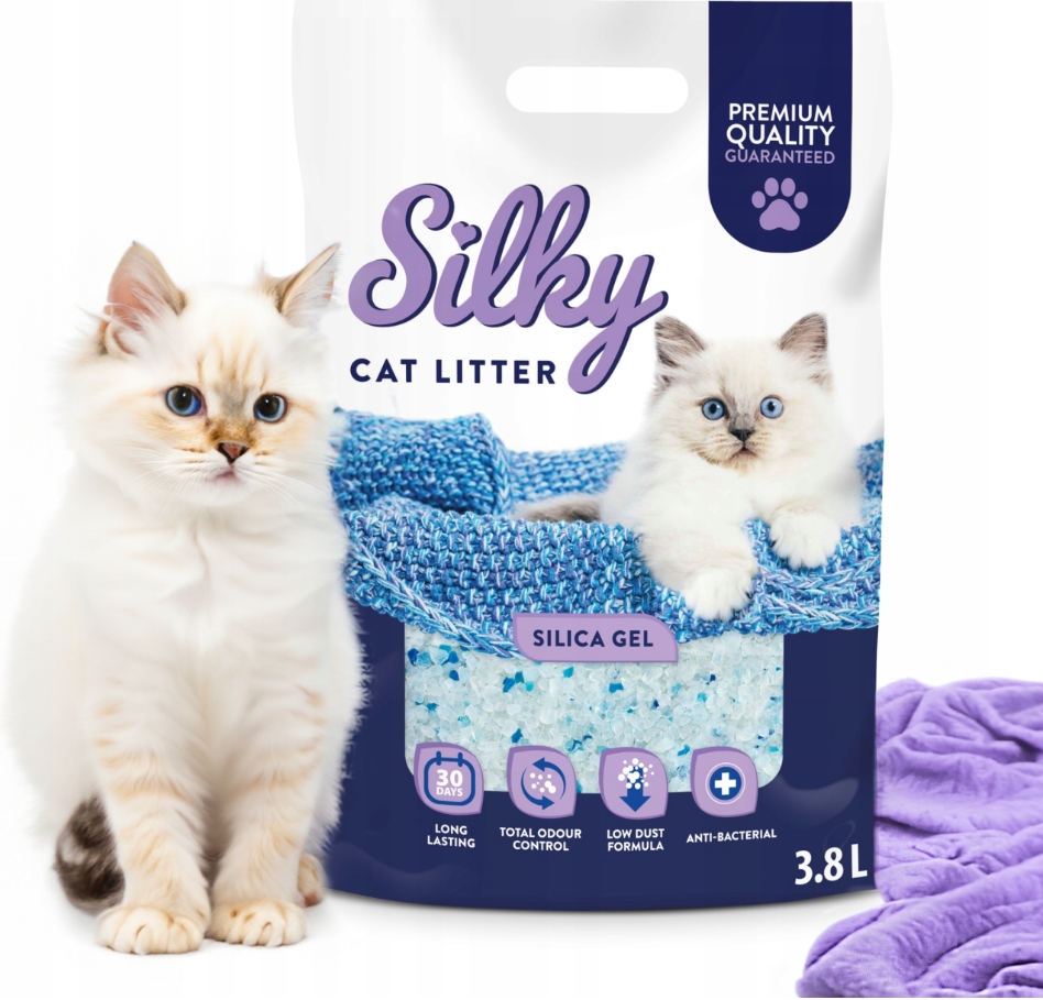 Żwirek silikonowy dla kota Silky ❤️ – Twój wybór dla niezrównanej czystości i komfortu.
