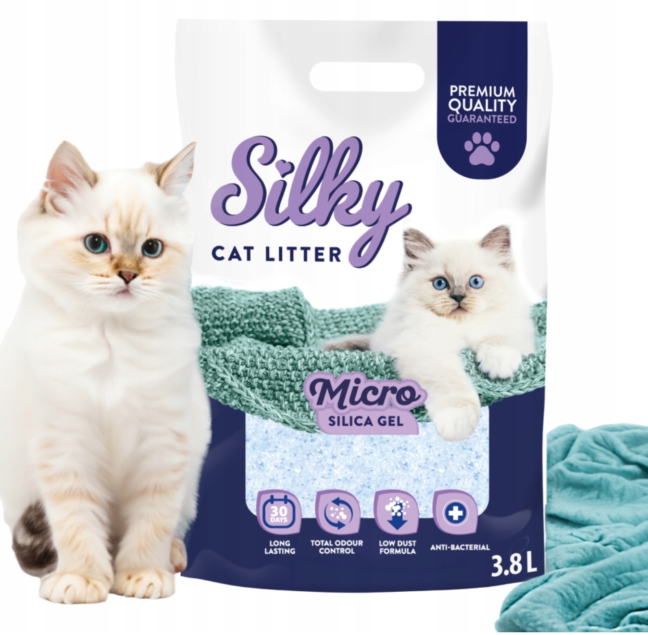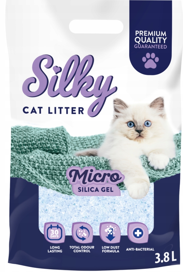 Żwirek silikonowy micro dla kota Silky ❤️ – Twój wybór dla niezrównanej czystości i komfortu.